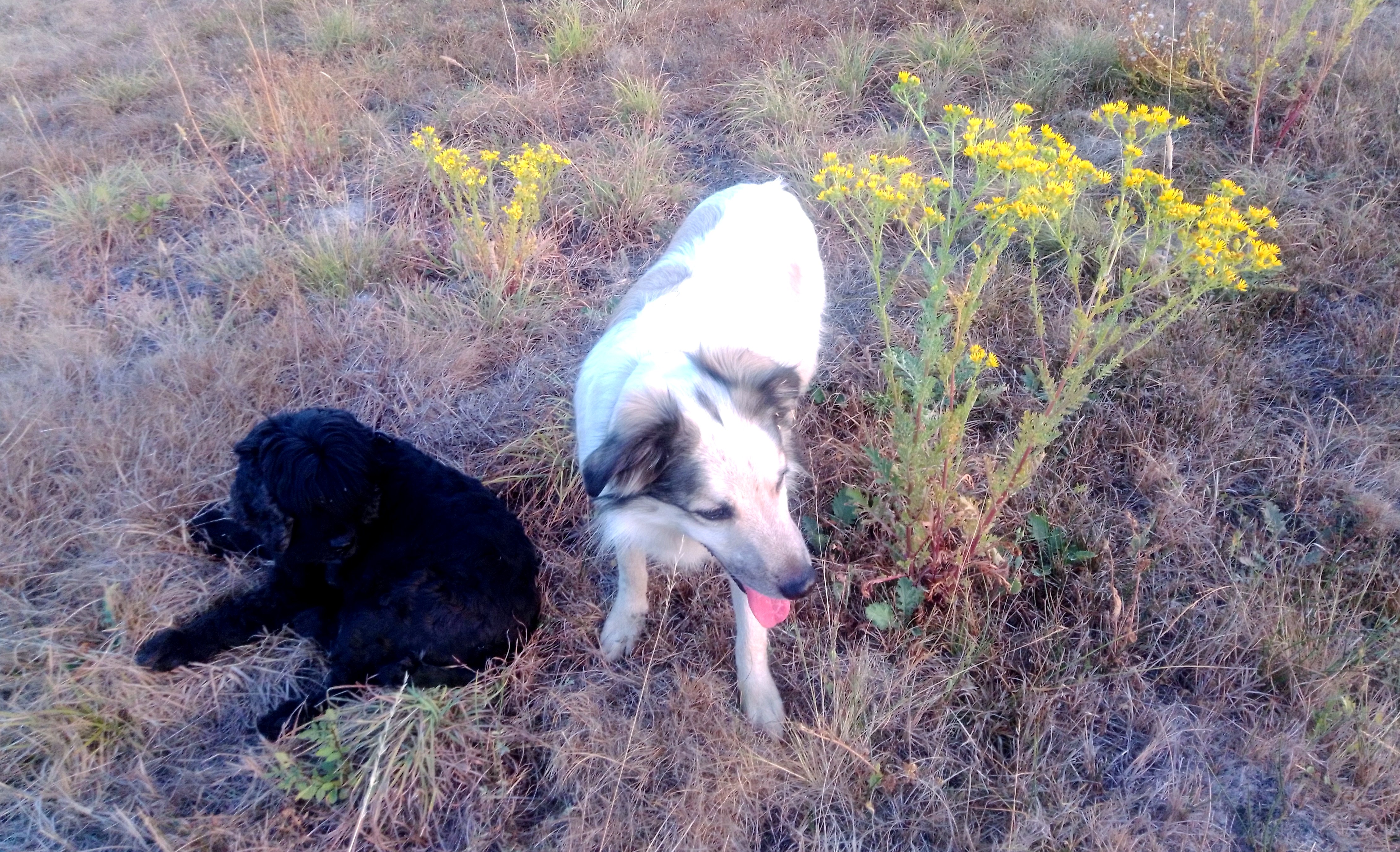 Nuestro paseo continúa hasta que regresamos a la vista del pueblo, con el sol entusiasmado sobre la tierra que nos rodea, sobre nuestros cuerpos y nuestras cabezas. En algún prado descansamos unos minutos para tomar resuello, la lengua fatigosamente fuera de las bocas, las patas de Close recogidas entre algún redondel de hierba más verde; Oz solamente descansa, nos mira y espera que sigamos; yo me apoyo en el cayado y recuerdo mi infancia junto a este calzapete amarillento y florecido (senecio lo llama la botánica). Allá en Acisa, en mi lejana infancia también pasé algunas horas entre calzapetes cuidando vacas y recogiendo con el rastrillo las marañas de hierba que mis padres hacían al segar con la guadaña.